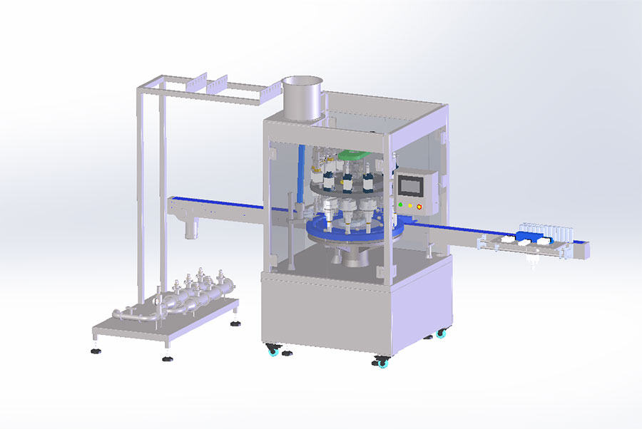 產(chǎn)品描述設(shè)備如下圖1: 此產(chǎn)線配置產(chǎn)品有(從前端到后端):回轉(zhuǎn)式高速上閥機(jī)組、離心式高速理閥機(jī)、供閥提升機(jī)、6工位高精度計(jì)量缸&單組增壓泵、6頭封口&6頭充氣一體機(jī)(正壓防爆電箱和防爆人機(jī)界面)。具有操作簡單,人機(jī)交互友好,故障指示等優(yōu)點(diǎn)。便于排查和排除故障。2.各機(jī)組完成的生產(chǎn)工藝和性能參數(shù):A.回轉(zhuǎn)式高速上閥機(jī)組如圖2所示 圖2 型號:SG-QGQW25-150HSF回轉(zhuǎn)式高速上閥機(jī),16工位回轉(zhuǎn)式高速上閥機(jī)汲取國外先進(jìn)設(shè)備技術(shù)研發(fā)而成,機(jī)組由閥門提升機(jī),轉(zhuǎn)盤式離心理閥機(jī)(此設(shè)備根據(jù)閥門形式非標(biāo)定制)和高速回轉(zhuǎn)上閥機(jī)構(gòu)成。工作原理為一個(gè)送閥軌道...
